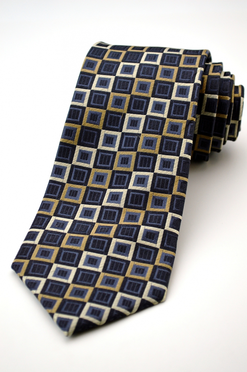 Tie your professional wear together with this black necktie. This dashing tie is adorned with intricate cream and taupe box designs for added interest and a sharp appeal.