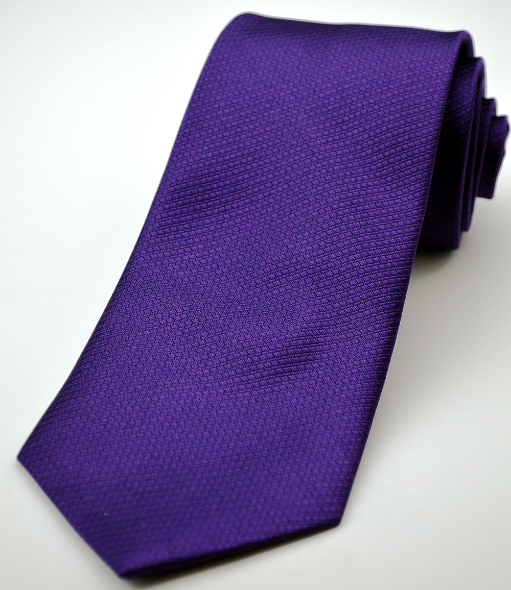 This 100% silk tie is crafted from a textured weave. This purple necktie is a formal necktie and can be worn very formally, or dressed down. It is suitable for weddings and even everyday use.
